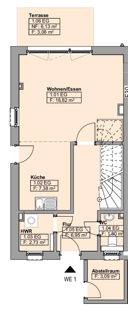 Das Haus wird in massiver Bauweise auf einem Grundstück von rund 305 m² Grundstücksfläche errichtet. Die Gesamtwohnfläche beträgt ca. 104 m² und teilt sich dabei in vier großzügig geschnittene Wohnräume über drei Etagen auf. Das Erdgeschoss umfasst dabei den geräumigen Wohn-Essbereich mit offener Wohnküche.