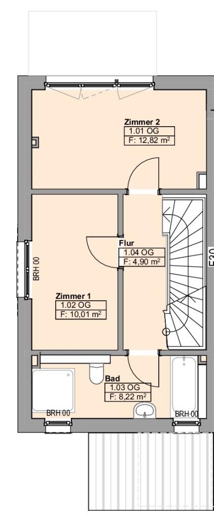 Viele Möglichkeiten bieten auch die beiden Wohnräume des Obergeschosses. Sie sind durch ihre Raumgröße und -aufteilung gut zu möblieren. Das Familienbad sorgt hier mit einer Dusche und auch einer Badewanne für einen guten Start am Morgen. Ausgestattet mit weißen Sanitärobjekten lässt es sich mit eigenen Farben hervorragend ergänzen.