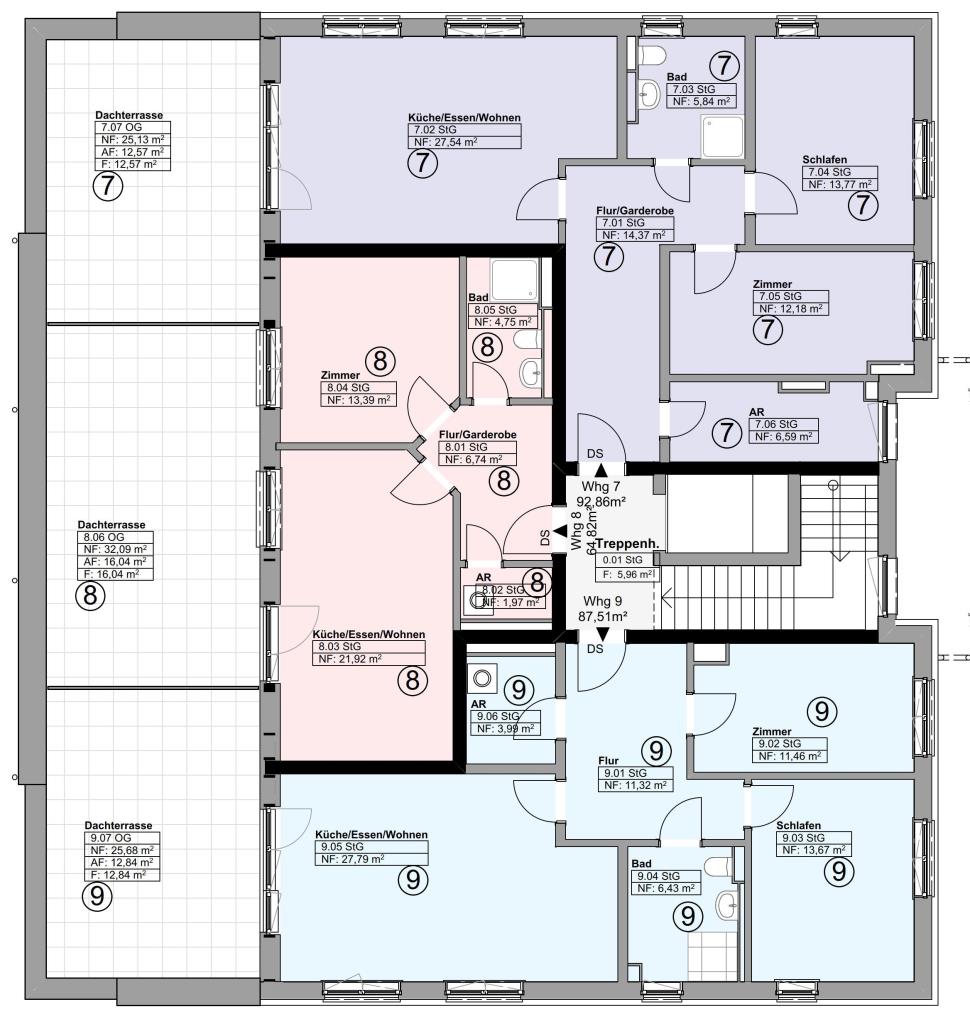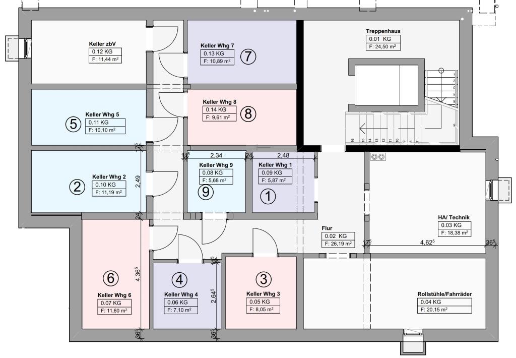 Es entstehen insgesamt 9 Eigentumswohnungen, je Etage 3 Wohnungen. Durch den Aufzug im Haus besteht die Möglichkeit, auch ohne Stufen zu Ihrem privaten Kellerraum zu gelangen.