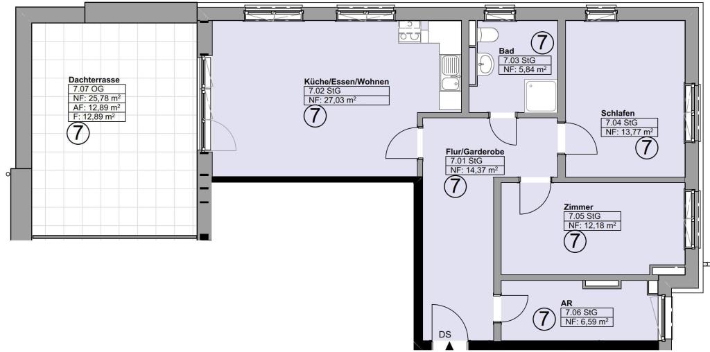 Die hier zum Verkauf stehende Wohnung liegt im Erdgeschoss und wird als 3-Zimmer-Wohnung ausgeführt. Ein sorgfältig geplanter Wohnungszuschnitt wird dem Betrachter nach ihrer Fertigstellung das Gefühl geben, zu Hause angekommen zu sein. Es entstehen moderne, helle Wohnräume, in die Sie dann nur noch einziehen müssen. Das Herzstück der Wohnung ist ohne Zweifel der kombinierte Wohn- und Essraum mit dem Zugang auf die sonnenausgerichtete Terrasse, wo sich jeder Eigentümer nach Belieben seine eigene Wohlfühloase schaffen kann. Der separate Küchenraum liegt direkt neben dem Wohn- und Esszimmer. Hier wird das Kochen mit der neuen Einbauküche zu einem schönen Erlebnis. Alle Wohnräume sind vom Flur aus zu erreichen. Dieser bietet neben dem Garderobenplatz auch einen Zugang in eine kleine Abstellkammer für Reinigungsutensilien oder auch Vorräte.
